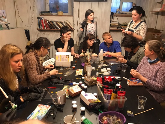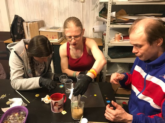Художница Валентина Фаттахова провела для нас мастер-класс по изготовлению украшений из эпоксидной смолы. Заливали смолой засушенные цветы и листья, а в перспективе, как рассказала Валентина, заливать можно что угодно! Процесс выглядел волшебно, а желающих попробовать всё прибывало.