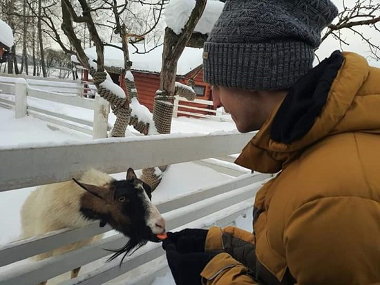 Они покатались на пони, покормили кур, корову, козлов. Енот сам добывал еду у ребят из рук. Увидели лошадей, индюков, гусей и лебедей и поиграли с кроликами. Эх, жалко мороз был и ветер, но уходить не хотелось.
