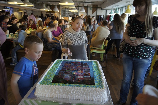 А вот такой по традиции был торт с нашей коллективной картиной — за него спасибо Олегу Фогелю! Счастье есть!