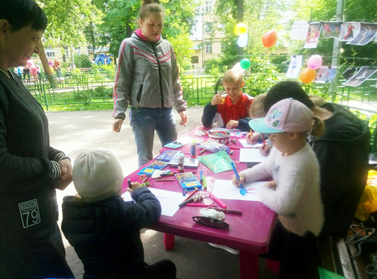 Наши художники и волонтёры провели мастер-класс по рисункам на спортивные темы. Причём, рисовали как на бумаге (каждый свой любимый спорт), так и на асфальте (гигантский футбольный мяч, в котором — целый мир!). Желаем нашей команде побед и красивой игры!