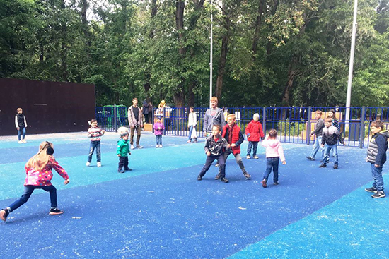 Волонтёры из Пеликана проводили на улице подвижные игры и уроки жонглирования.