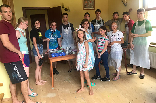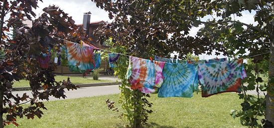 Замечательный волонтёр Дэби Сирз из США в это лето проводила мастер-классы по окрашиванию футболок в технике тай-дай. Так что все дети уехали с собственноручно покрашенными футболками.