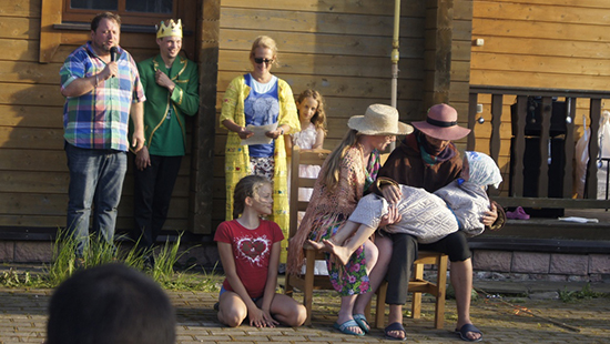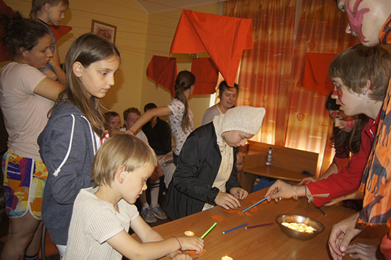 Семьи получили сценарии своей четверти сказки и за два часа воплотили их в сцены.
