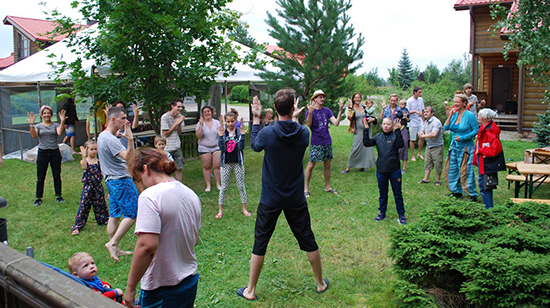 Каждый день перед мастер-классами все желающие в лагере делали зарядку. Её проводили Лёша Ждамиров и Фано. И это было прекрасное начало дня!