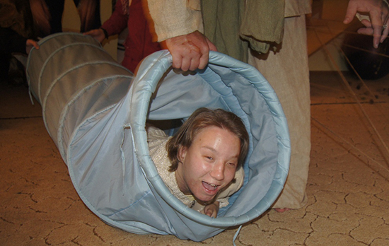 В доме Воды проводили физические опыты и знакомились с силой Архимеда, определяли на слух разные «водные» звуки, доставали из воды яблоко без помощи рук, проходили по плавучим островкам, всей командой держась за руки.