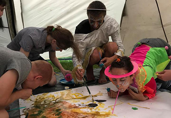 В «Театре с колёс» — традиционном для нас формате импровизированного спектакля — в этом году была сказка «Варвара-краса, длинная коса».