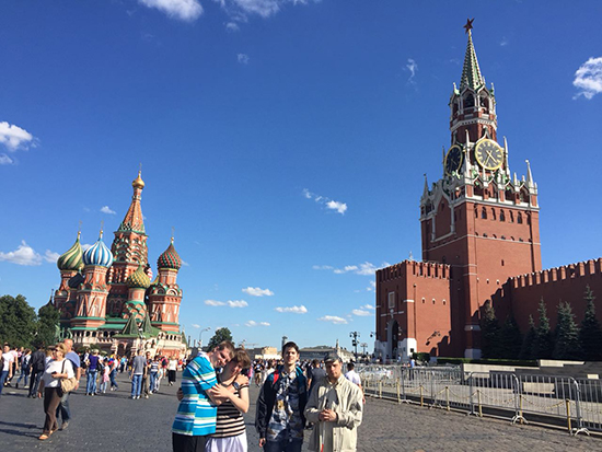 «2 июля гуляли по Красной площади и рядом. Посмотрели на Кремль и на иностранных болельщиков. Слышали разные языки, пытались по флагам, по виду и на слух определить, откуда приехали гости. Слушали бой курантов.