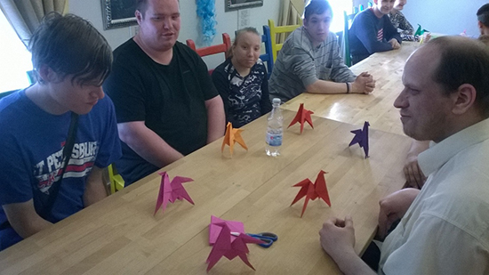 Сегодня ребята из ПНИ 16 в парке Кузьминки побывали на экскурсии в конюшне, знакомились с лошадьми, гладили их (особенно в восторге от такой возможности незрячий Андрей), а потом на мастер-классе делали бумажных лошадок в технике оригами.
