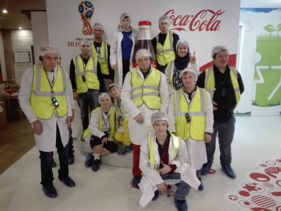 Ребята из ПНИ 16 съездили на фабрику Кока-Колы. Очень давно ждали эту экскурсию. И вот наконец увидели как работает конвейер, а по нему с бешенной скоростью носятся наши любимые напитки. Всех одели в специальную одежду — белые халаты и жилетки, дали наушники с диктофонами, чтобы слушать экскурсовода, так как на производстве очень шумно.
