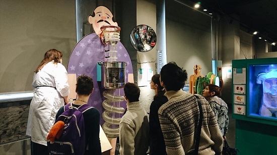 Вы знали, что длина тонкого кишечника человека — 7-8 метров? А сколько весит мозг человека, знаете? А ребята теперь знают! Все почувствовали себя врачами и исследователями, музей интерактивный — можно было трогать, менять и пробовать делать самому. Диму Червинова особенно заинтересовало устройство уха, он задавал много вопросов — это была важная для него тема, он поделился, что ухо болело и он всегда хотел разобраться подробнее. Самые смелые погладили огромного таракана.