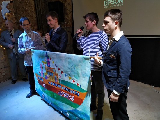 «взрослые дети» (ребята из психоневрологических интернатов) показали целую художественную композицию по песне «Капитан» — сами нарисовали для неё большую картину-декорацию с кораблём, русалку и рыб.