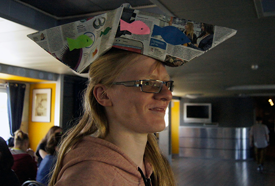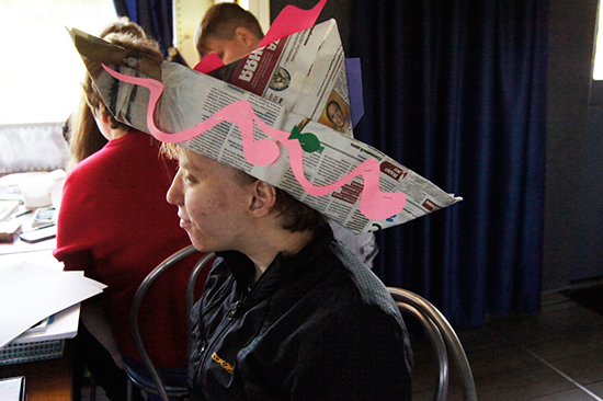 а волонтёр Ирина научила ребят делать шляпы-корабли из газет и цветной бумаги.