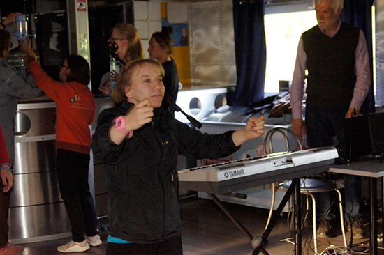 На обратном пути по традиции у нас на кораблике концерт — пели песни все, кто хочет и любит петь — и дети, и взрослые, ещё был маленький импровизированный спектакль.