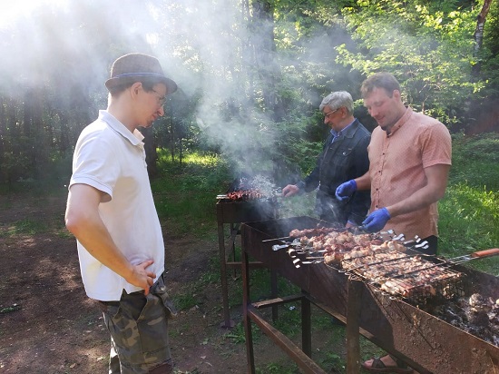 Тем временем наши чудесные рыцари ножа и шампура приготовили на все 150 человек шашлык — и это всегда кульминация праздника!