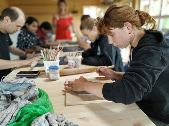 и в расположенный рядом Центр ремёсел, где увидели, как работают мастера — гончар, стекольщик, столяр и кузнец, услышали их рассказы о секретах ремесла.