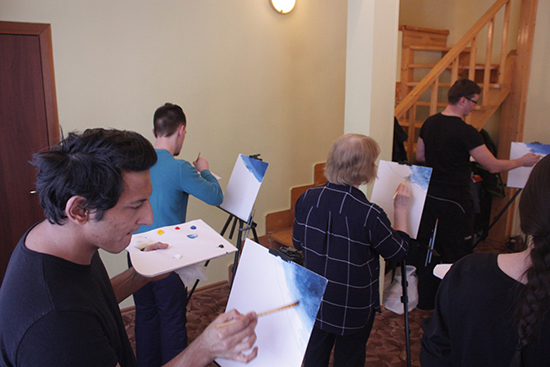 В домиках тоже не скучали — помогали готовить еду и мыть посуду, играли в настольные и клоунские игры. Волонтёр Руслан Ларцев проводил чудесные мастер-классы по живописи маслом.