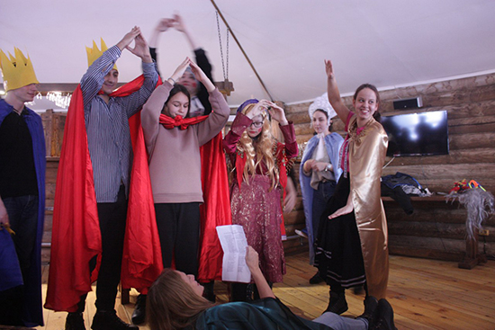 За пару часов, разделившись на группы, отрепетировали сцены из «Сказки о царе Салтане», а потом по очереди показывали, пока одна группа выступает — остальные зрители. Немного волнения, зато много веселья.