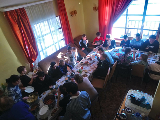 С нами отдыхали и катались на склонах ребята из Филимонковского детского дома-интерната, выпускники интернатов, пятеро детей из приёмных семей и впервые дети из республики Карелия: «Центра помощи детям, оставшимся без попечения родителей «Надежда» г. Петрозаводска и «Центра помощи №7» г. Сортовалы. Дети перезнакомились и много общались между собой и с волонтёрами.