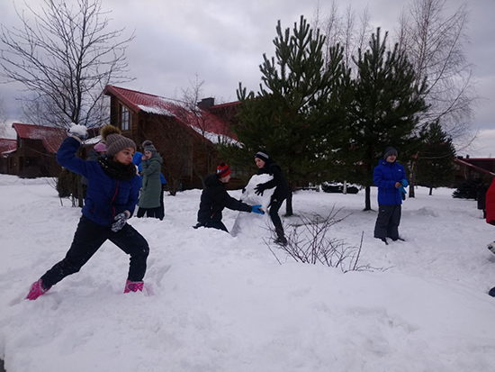 С погодой повезло, в эту тёплую зиму как раз в дни нашего отдыха выпал снег, так что мы не только катались, но и играли в снежки, лепили и раскрашивали снеговиков.