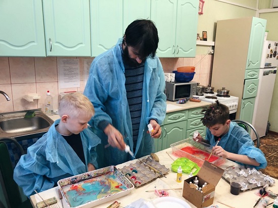 А ещё наш педагог Ясин Омар провёл для детей мастер-классы по эбру — искусству рисования на воде, с которым дети познакомились впервые, но сразу сумели создать очень красивые рисунки.