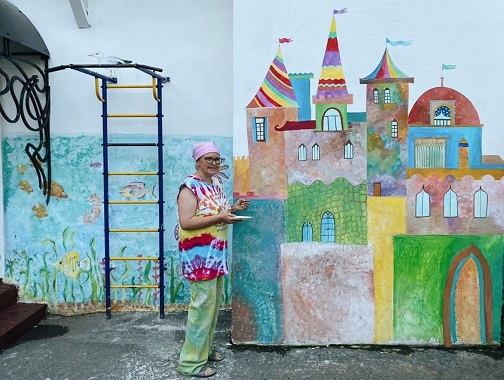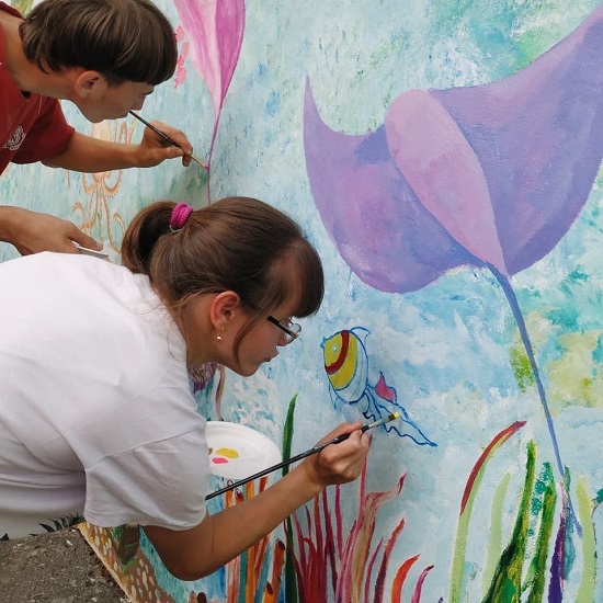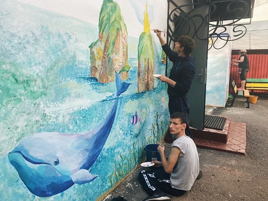 Расписывать стены нам помогали ребята из Егорьевского. Все соскучились за карантин и были очень-очень рады друг другу! Договорились чаще встречаться на онлайн-занятиях.