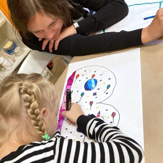 Мы попросили ребят нарисовать первую букву своего имени и наполнить ее тем, что любят. Это и самовыражение, и знакомство с материалами, цветами, фактурами... а еще — ощущение личной причастности!