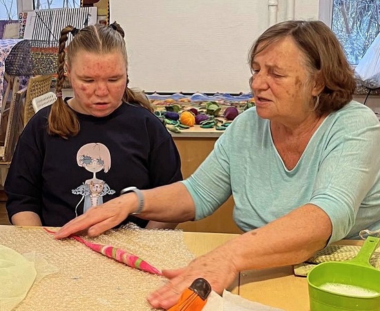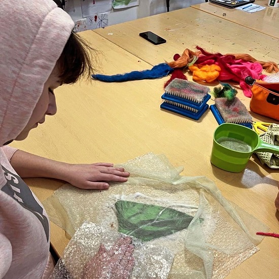 Наши юные мастера умеют работать как в технике сухого валяния (она хорошо подходит для изготовления игрушек), так и мокрого. В технике мокрого валяния удобнее создавать плоское войлочное полотно.