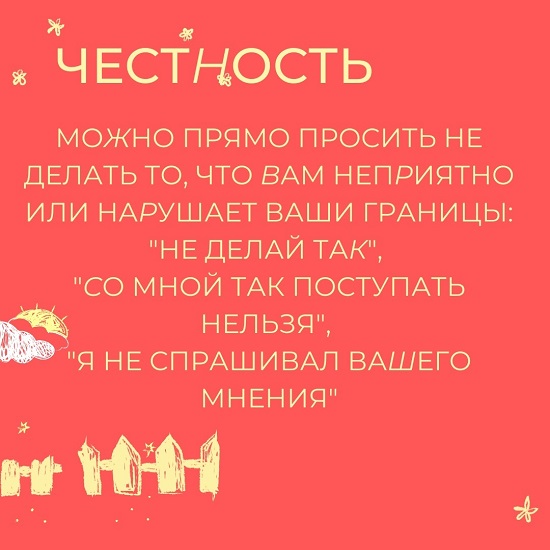 А вот ещё пример: вас пригласили на свидание и партнёр требует оплатить общий счёт. Вы удивлены и растеряны, не знаете как себя вести. Знакомо? Это только малый перечень ситуаций, в которых мы можем столкнуться с нарушением наших границ. И это очень важная и сложная тема во взрослой самостоятельной жизни.