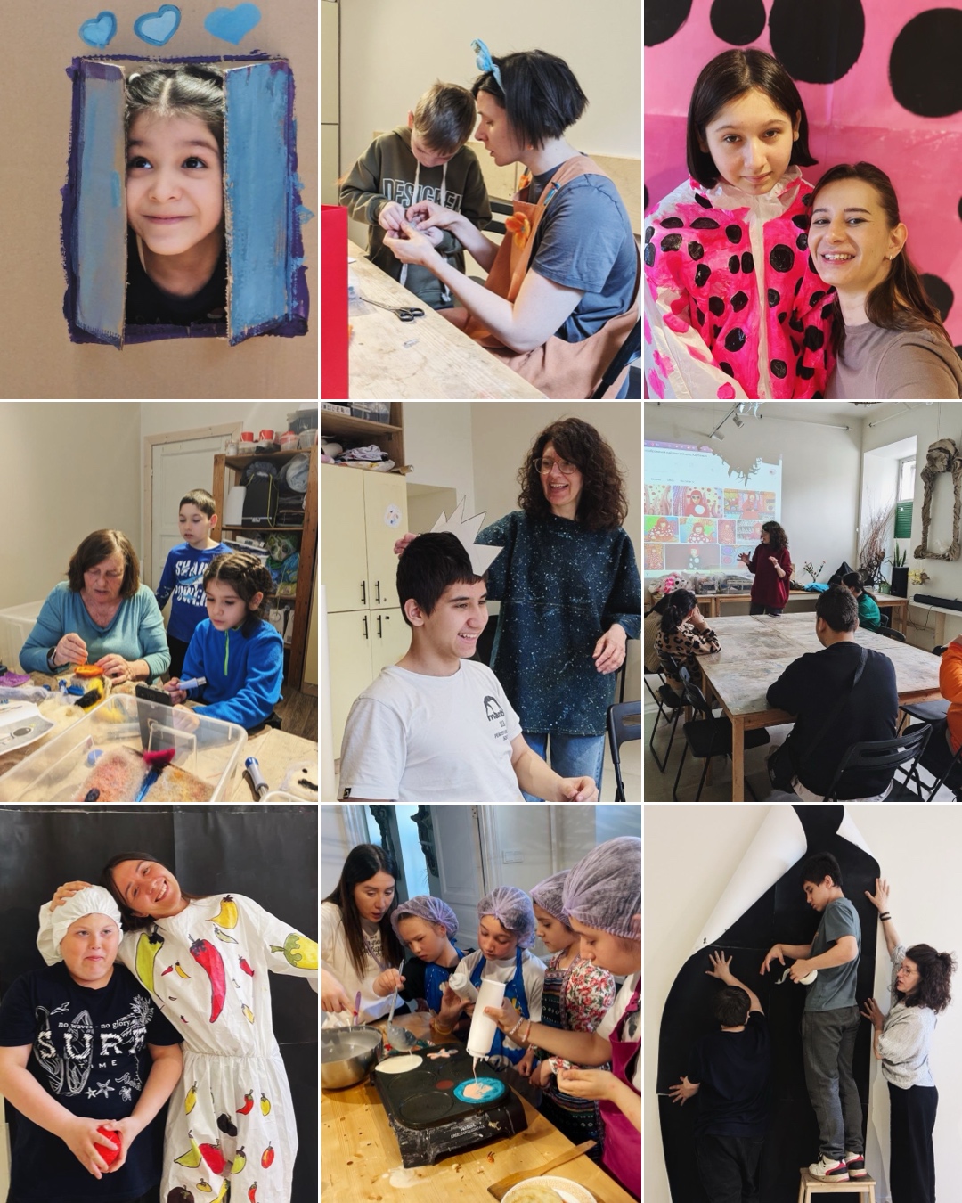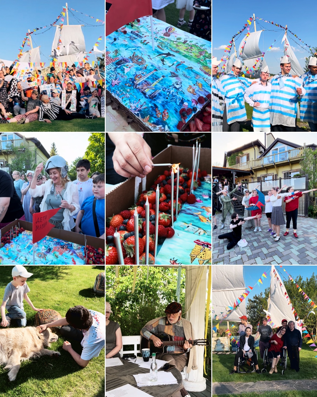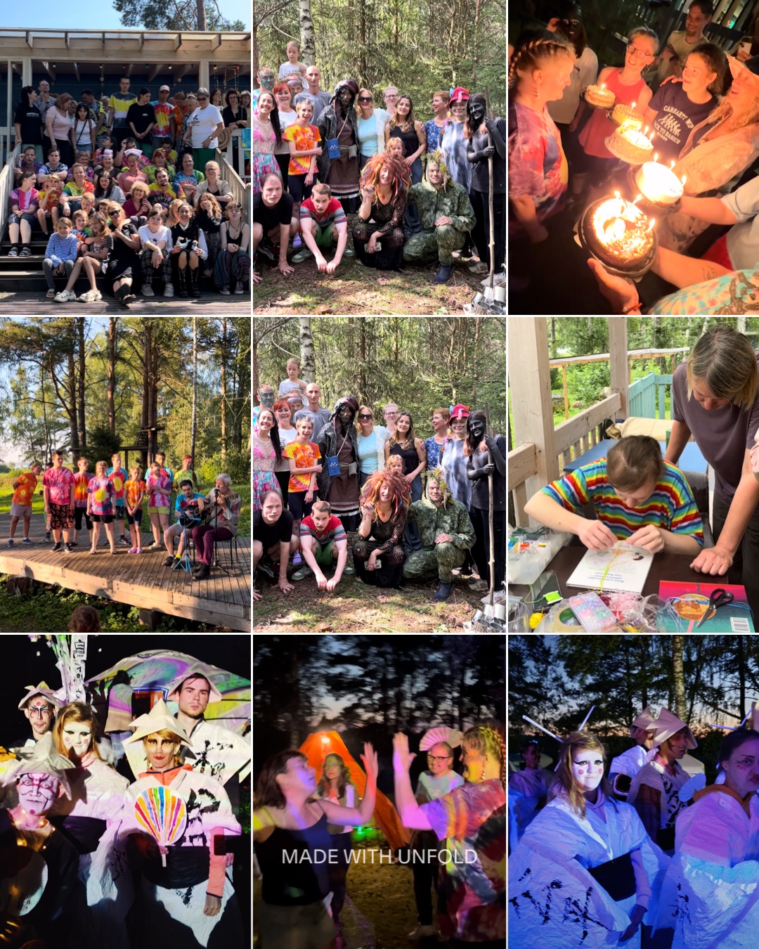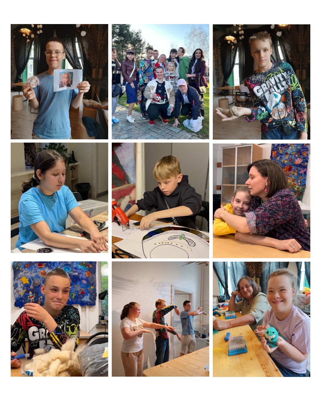 Мы провели вместе насыщенные, тёплые дни — с мастер-классами, прогулками, разговорами и общими делами. Участники — взрослые с ментальными особенностями и выпускники интернатов — играли в спектакле, танцевали, делали витражи и мозаику, рисовали и лепили, участвовали в приготовлении еды и еще очень много всего!