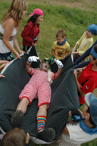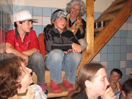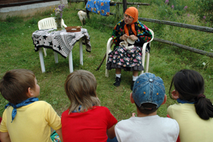 Юля Лосева: У Львов жизнь в семейное время была очень насыщенной. Мы успевали не только искупаться и на лодках покататься. Ира — наша мамочка — еще поставила с детьми спектакль. Она выбрала русскую сказку «Гуси-лебеди». И, что интересно в этой сказке играли и наши интернатские, московские дети, и бесланцы, и американские ребята (у нас в Семье была американская семья — мама Лесли и три сына). Хейсу, Дилану и Бену пришлось даже выучить по паре русских слов, чтобы играть торговцев на базаре. Но самую большую роль на непонятном ей русском языке пришлось учить Морган, которая играла бабу-Ягу. Она научилась выговаривать «Пойду за дровами!»