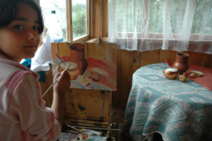 Мария и Маграт учили всех желающих писать маслом. В хорошую погоду это происходило на берегу озера — все писали пейзажи, а в дождь перебирались в дом и писали натюрморты.