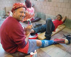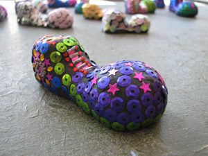 Асланбек и Лалита учили делать декоративные клоунские ботинки из пластилина, бисера и блесток. Лалита: Много было желающих, но мы провели всего три раза мастер-класс, потому что у нас материала не хватило.