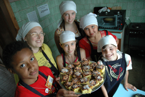 Юля и Полина учили печь печенье, пряники и прочие вкусности. То, что испекли, они каждый вечер отдавали на чаепитие в каждую семью по очереди. Так что всем досталось попробовать.