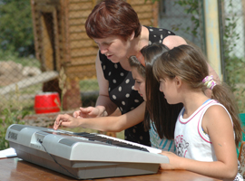 Вера Ивановна учила игре на синтезаторе и разучивала с детьми песни. Потом ребята выступили на большом концерте.