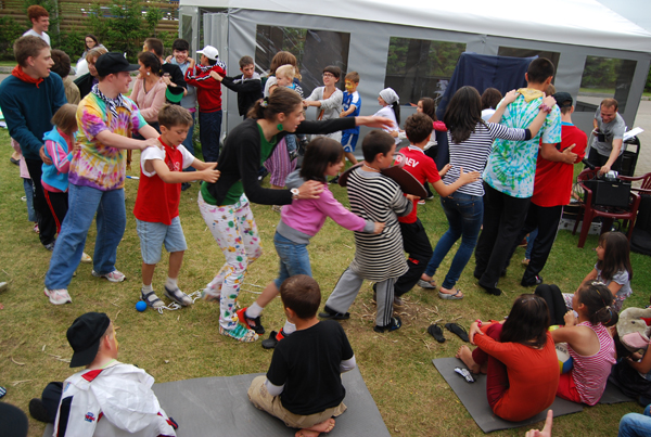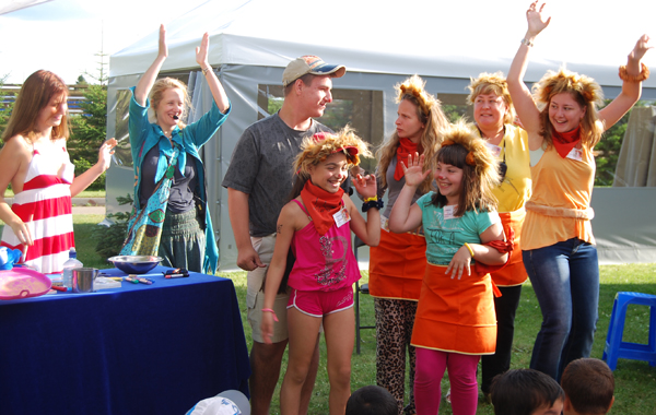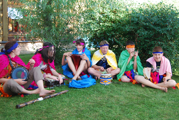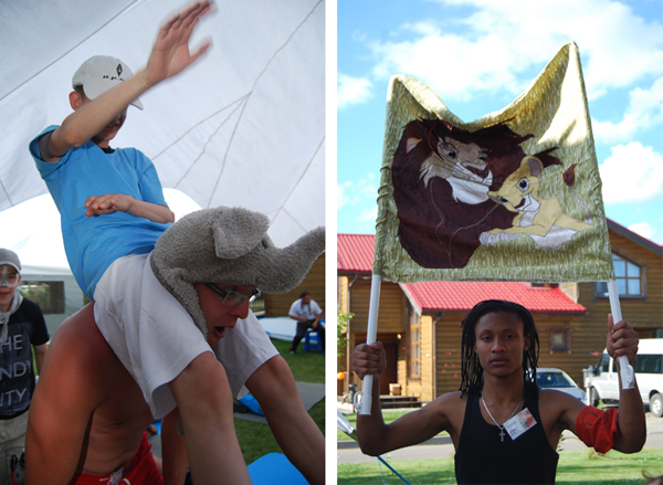 Когда дети приехали, началась торжественная церемония разделения на семьи – в этом году у нас снова было 4 семьи – Слоны, Зебры, Львы и Жирафы.