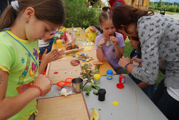 раскрашивание футболок и мыловарение, игра на барабанах и картины из пластилина,