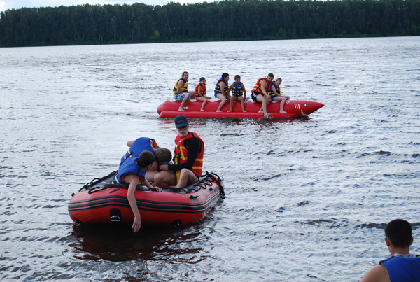 Выбрав один солнечный день, героический Александр Шишов катал всех ребят и взрослых на банане на Икшиском водохранилище.