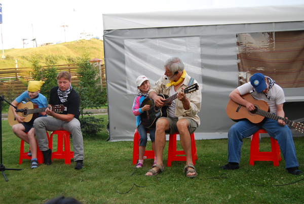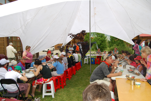 Альбина Гавриловна – учитель из Беслана – напекла однажды на весь лагерь вкуснейших осетинских пирогов, для чего бесланцы даже специально привезли с собой дровяную печку. Из компании Яндекс приехали волонтеры, которые учили нас ходить по канату! Еще были осетинские танцы и дискотека сумасшедших причесок.